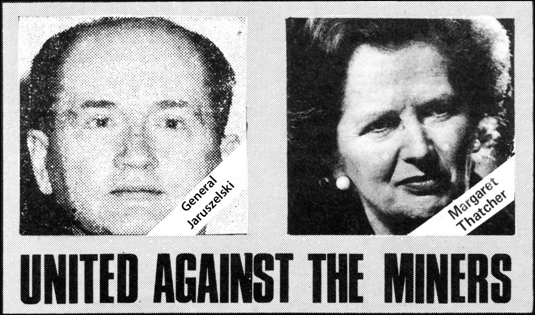 This betrayal of the miners' by the Polish Communists is the more ironic since top miners' union careerists like Arthur Scargill and Kent NUM leader Jack Collins have always gone out of their way to praise that regime. Scargill and Collins went so far as to give public support to the Army coup of General Jaruszelski and the military junta's crushing of the free Polish trades union Solidarity. In return, the Polish Red military dictatorship is now backing Thatcher's Tories in crushing the NUM, whilst the anti-Communist Solidarity backs the British miners. No wonder the miners who thought the Communists were "on their side" are ever more confused as well as angry.